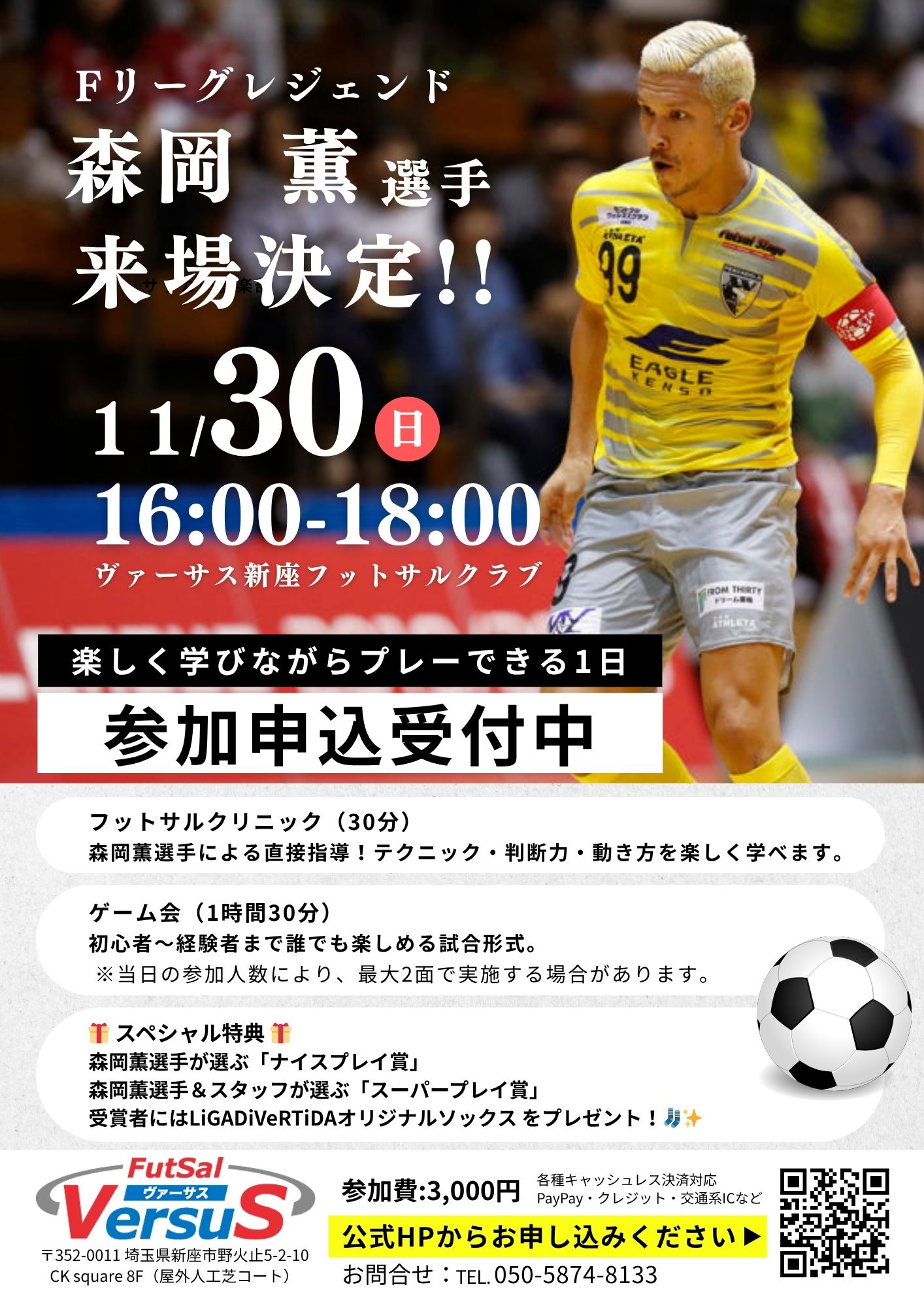 | イベント名 | 森岡薫選手来場‼️特別フットサルイベント✨【ヴァーサス新座】 |