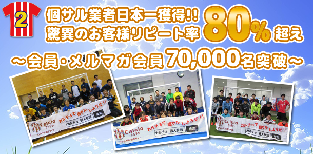 カルチョでは単に個サルを開催し進行するのではなく、お客様を第一に考え、ひとりひとりを大切にし、しっかりサポートすることにより、驚異のお客様リピート率80%以上という数字を出せています!
